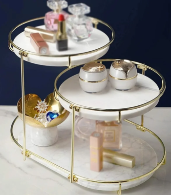 2 Layer Marble Makeup Tray, Dessert Cupcake Stand.