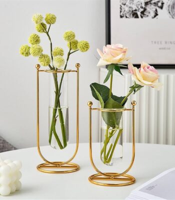 2 Pieces Metal Crystal Flower Table Show Pieces Decoration for Home Living.