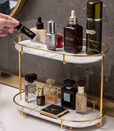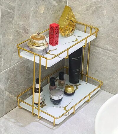 Dressing Vanity Tray Metal Cosmetic Shelf Organizer 2 Tiers.