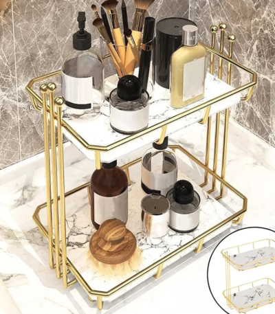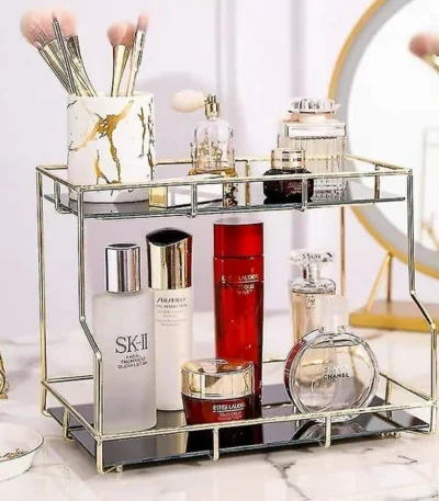 European Design Free Standing Shelf 2 Tier Makeup Organizer.