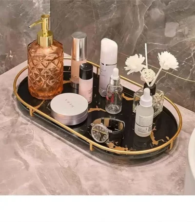 Oval Shape Design Marble Cover Tray for Cosmetics.
