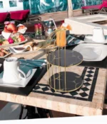 - EASY TO CLEAN: With a sturdy stainless steel frame that can prevent rust in wet places and removable acrylic trays, this top stand is both functional and easy to clean.